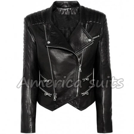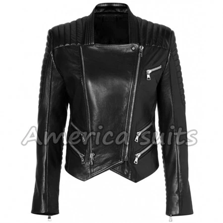 Here are examples of alerts to young women and ladies who are always searching for Women Black Biker Leather Jacket For Women, something new and tasteful for the season. In the blink of an eye, it is time to yourself in a Black Leather Biker Jacket. It is a complete exemplification of class, style, and drawing quality. The Biker Black Leather Jacket for women is made from high-quality lambskin with diagonal zipper closure, snap tab button lapels and a ststandupollar. The class and elegance of wearing the Women Black Biker Leather Jacket are available from America Suits as we bring the finest quality, rugged, and rare jackets. We take pride in making our jackets. Get comfortable and order and have the luxury of wearing the America Suits products.