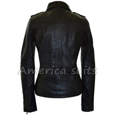 Black Motorbike Leather Jacket For Women
