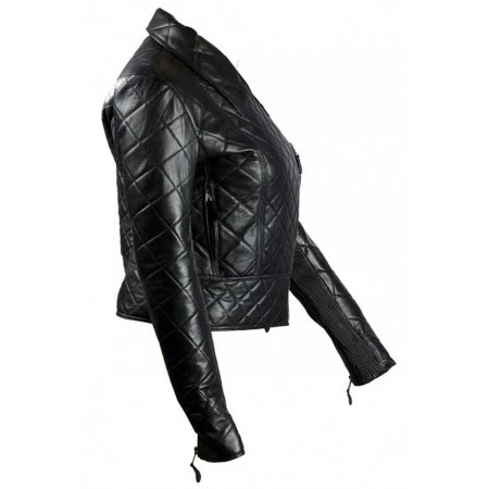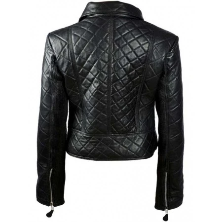 Women's Black Leather Quilted Biker Jacket