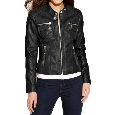 The sensibly refined elements with specially designed conventions are made to the check. This exemplifies delivery, an interpretation merited regarding the Women's Black Leather Biker Jacket gathering. Our clothing arrangements are institutionalized fittings and feel–calfskin fastidiously converged with a smooth, gooey coating to give you a chance to rest notwithstanding when in the piece of clothing allure—going to the pockets that are profoundly established with exceedingly stretchable cowhide executions, offering you a high resistance and durable fundamentals upkeep. Zip Pockets and additional fold pockets are included in this fix-up pocket plot. Generally, it is very much characterized as biker wear for young ladies of any age. Credibility is the benchmark for its plans and refined patches. An outfit represents you're worth!
