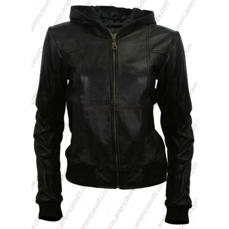 Product Specifications For Women Hoodie Style Black Leather Jacket: