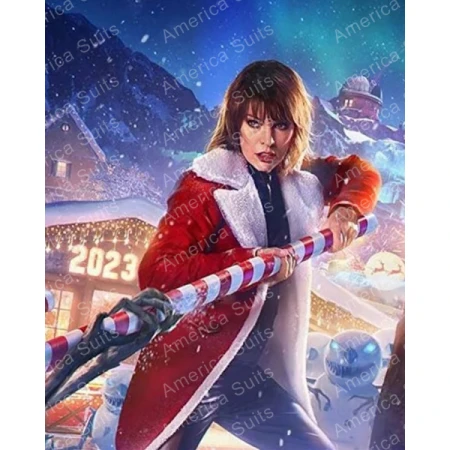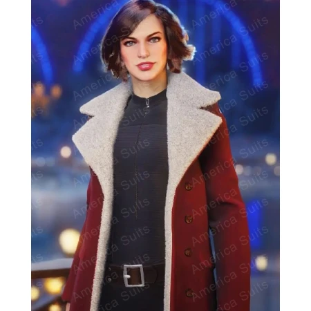 Ops Milla Jovovich Shearling Red Coat