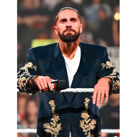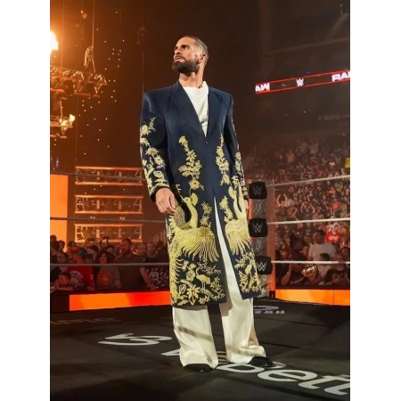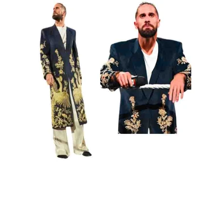 WWE Wrestler Seth Rollins Golden Peacock Velvet Long Coat