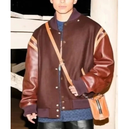 The rich brown color of the jacket adds a sophisticated and versatile element to your wardrobe. It effortlessly complements a wide range of outfits, from casual jeans and a t-shirt to more formal attire. The timeless appeal of the brown hue ensures that this jacket remains a staple in your wardrobe for years to come. In summary, the XO Kitty 2023 Anthony Keyvan Bomber Jacket is a remarkable blend of style and comfort. With its wool and leather construction, button closure, rib-knitted collar and cuffs, and ample pockets, this jacket offers both functionality and a fashionable edge. Whether you're attending a social gathering, going for a stroll, or simply running errands, this bomber jacket will keep you looking effortlessly stylish and feeling comfortable throughout the day.