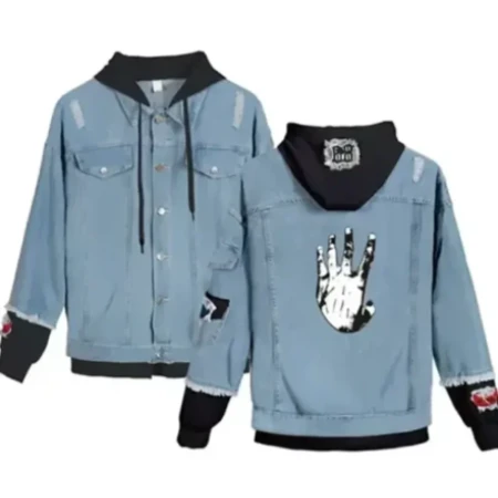 Category: unisex graphic denim jacket / hoodie-denim hybrid (style-dependent)