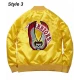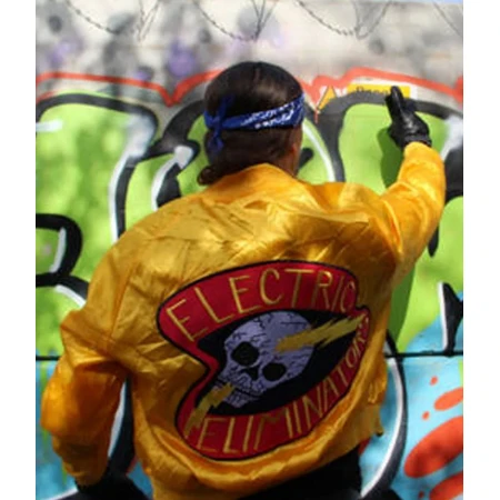 For all those enthusiasts who love to be clad the flashy attire that would make them feel at a party, indifferent from being at it. The Electric Eliminator Jacket is exclusively designed for them to attain their flaunting dressing desires. It is the exclusive work of craftsmanship and invention which makes it a one-off apparel. The extravagant attire is crafted using premium quality satin fabric, innovatively designed as the back is imprinted with the electric eliminator logo, which is the characteristic sign pattern of the entire apparel. the Warriors Satin Jacket upper collar is also exclusively patterned in a rib knitted style, demonstrating its inventive design. The frontal corsage is close with a buttoned conclusion it also seems fairly binding to don suitably due to fully buttoned.