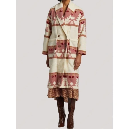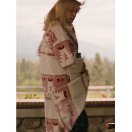 Features Yellowstone Beth Dutton Pink Printed Coat: