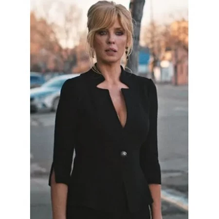Kelly Reilly Yellowstone S04 Black Notch Neck Jacket
