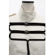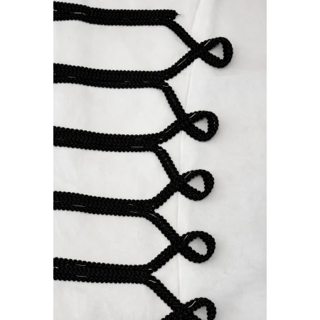 The customized shape has full-length sleeves with black cuff trims to reflect the high contrast of the white and black color scheme. There are no pockets in the design, and this gives the garment a curved and smooth silhouette that places more emphasis on the stunning construction than on the volume. This attention to critical detailing turns the jacket into a complete everyday product for people who enjoy high-concept fashion, which is comfortable and pragmatic.