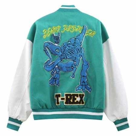 Zero Fighter T-Rex Dinosaur Skeleton Varsity Green Jacket