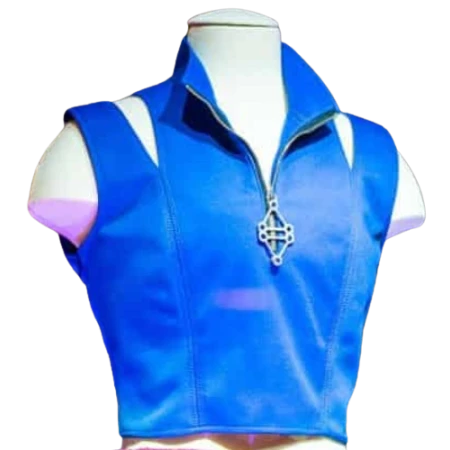 Crafted from soft, breathable fabric and featuring a sleek stand-up collar, this vest is tailored to highlight confidence and charisma. The front zipper closure adds modern convenience while enhancing the streamlined silhouette. Its bright electric blue tone, symbolic of Addison’s cheer squad legacy and evolving supernatural journey, makes it a standout choice for fans and fashion lovers alike.